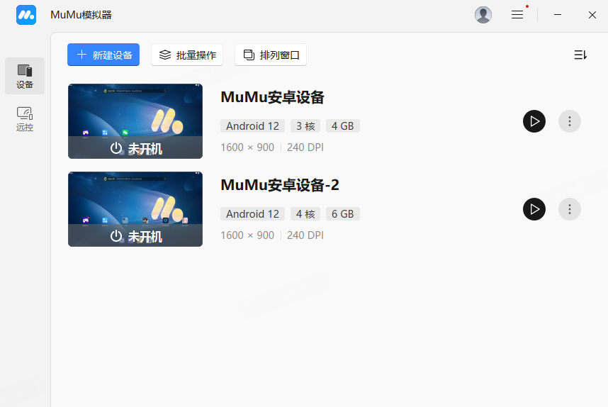 点击 MuMu安卓设备菜单-设备多开,或是双击电脑桌面 MuMu模拟器图标;