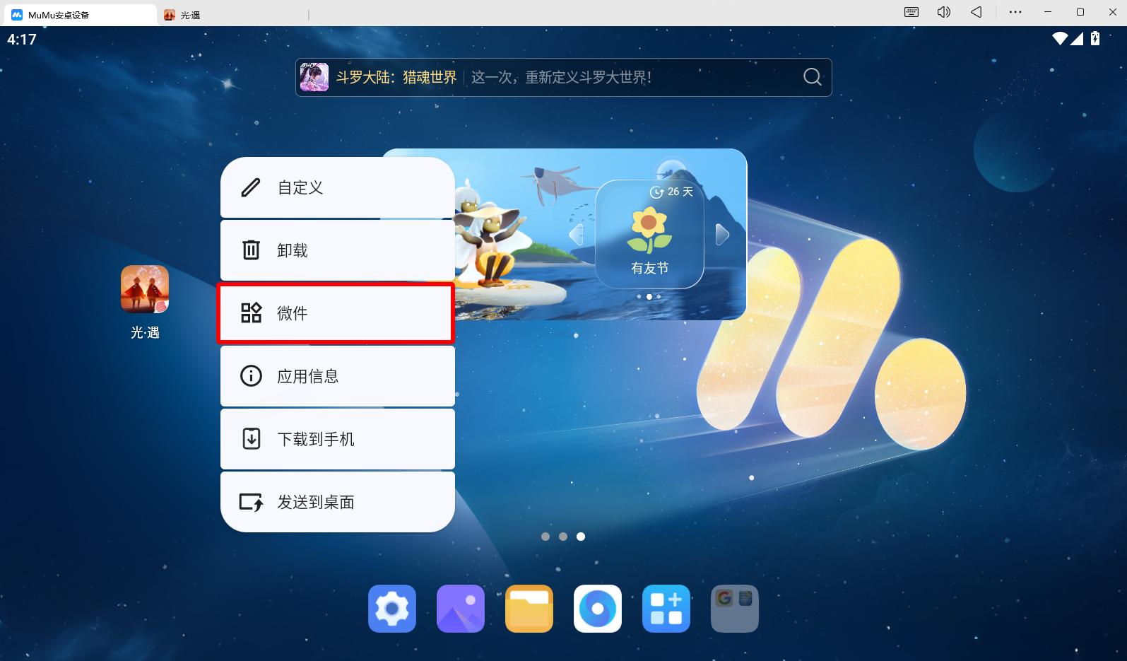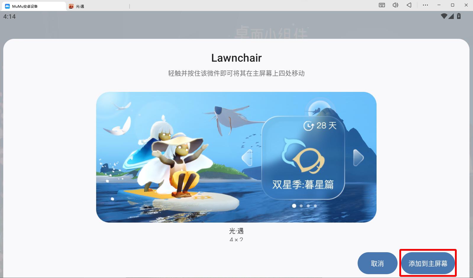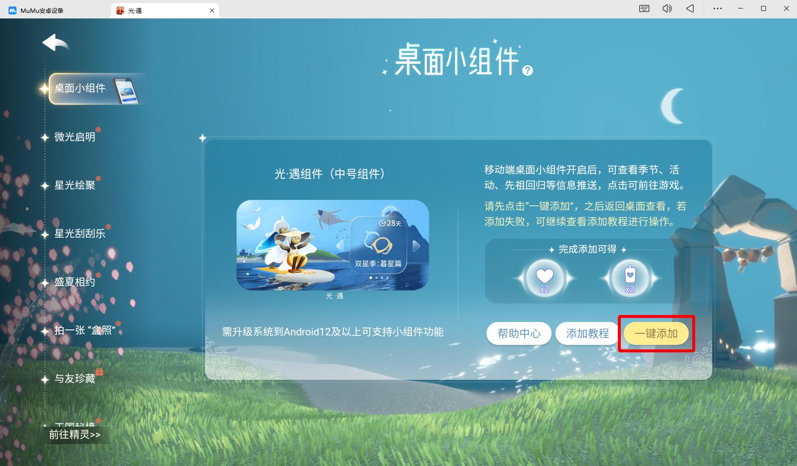 MuMu模拟器 5.0 新版本支持游戏上新的小组件功能!《光·遇》如何设置小组件呢?Mu酱为大家带来如下教程,让大家更快上手~