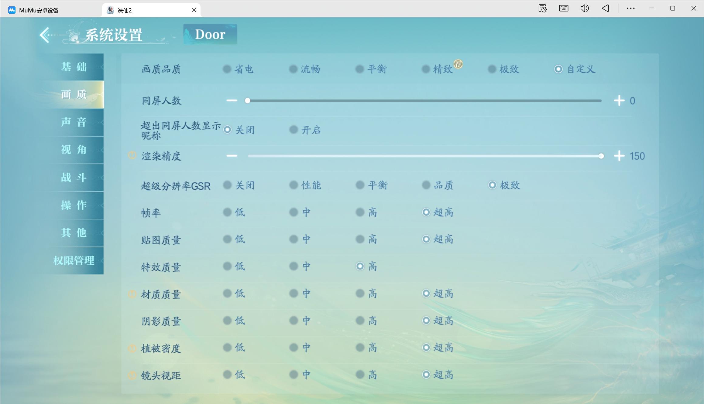 仙友设备性能若满足推荐配置,则推荐到游戏设置内,将画质设置设置自定义,并将各类画质选项调整至极致/最高。
