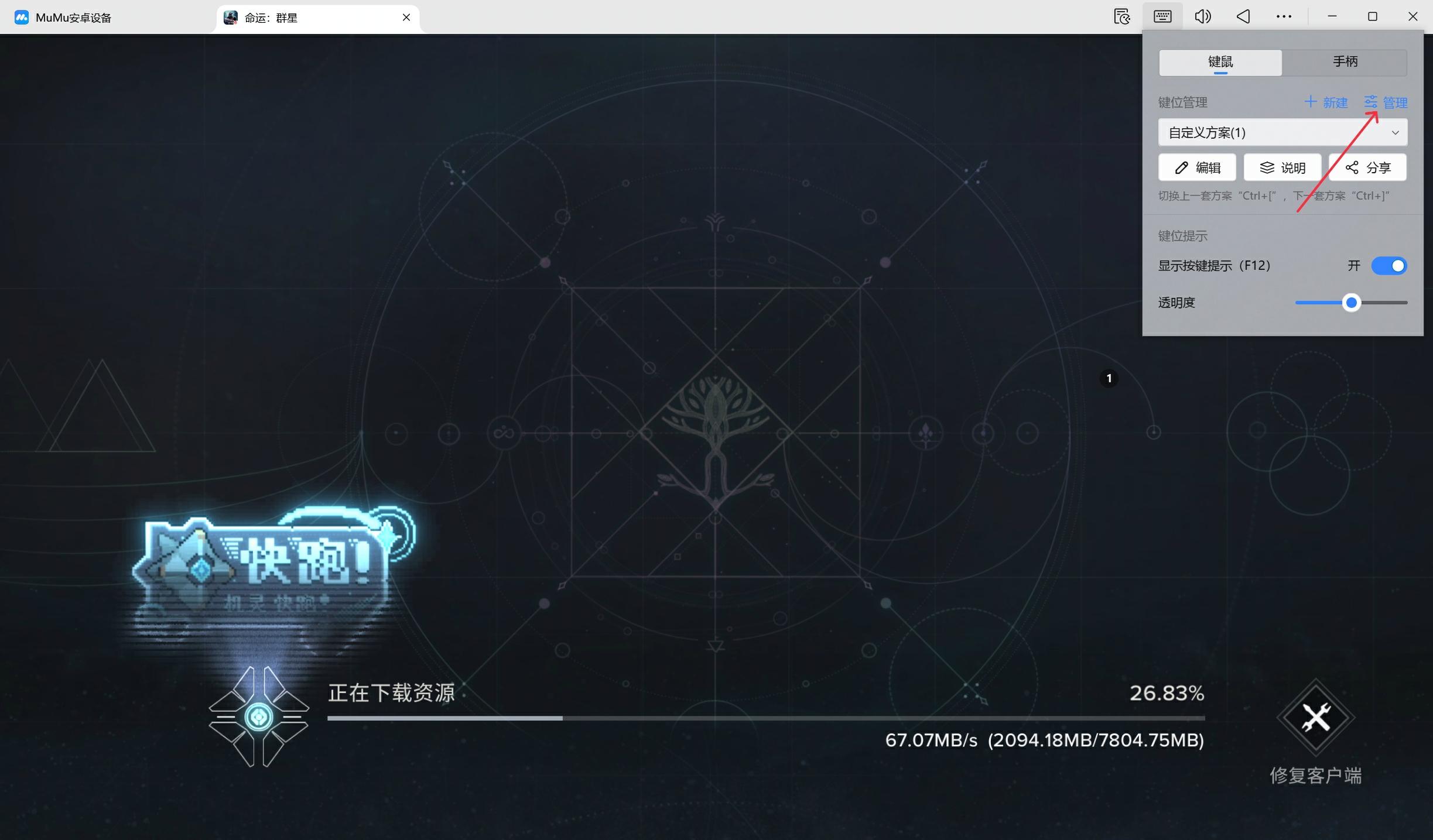 部分用户在使用 MuMu模拟器运行《命运:群星》时,会遇到默认云按键方案丢失的异常问题,遇到这类异常情况,可参考以下步骤操作。