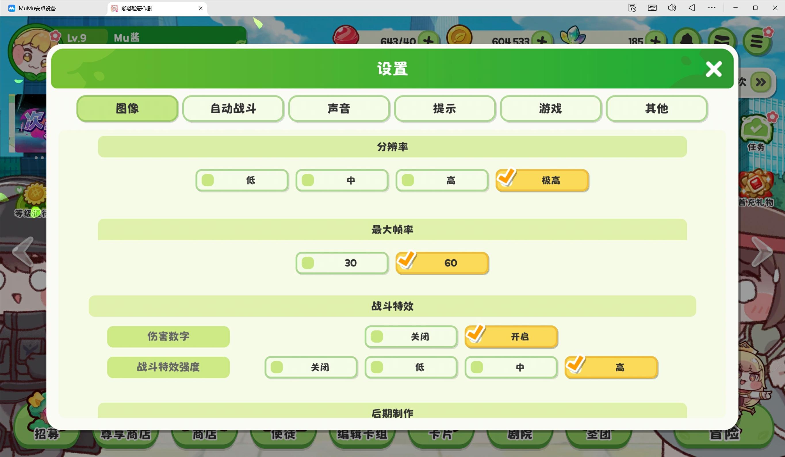 进入游戏设置界面,将分辨率调整为极高,并将帧率调整为60即可。