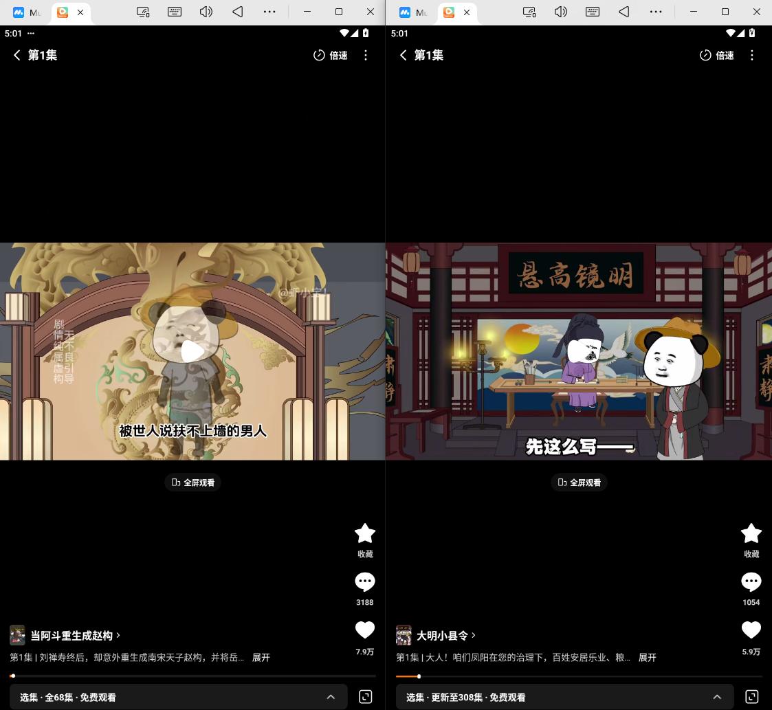 浏览短剧视频时,也可通过鼠标左键点击/长按、鼠标滚轮上下滑动进行短剧视频调整。
