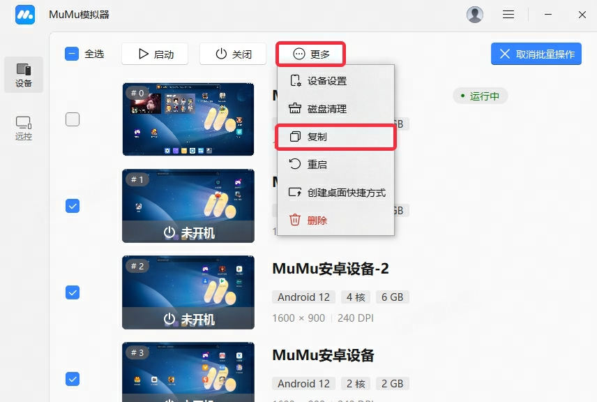或通过批量操作,复制所需数量的 MuMu安卓设备。