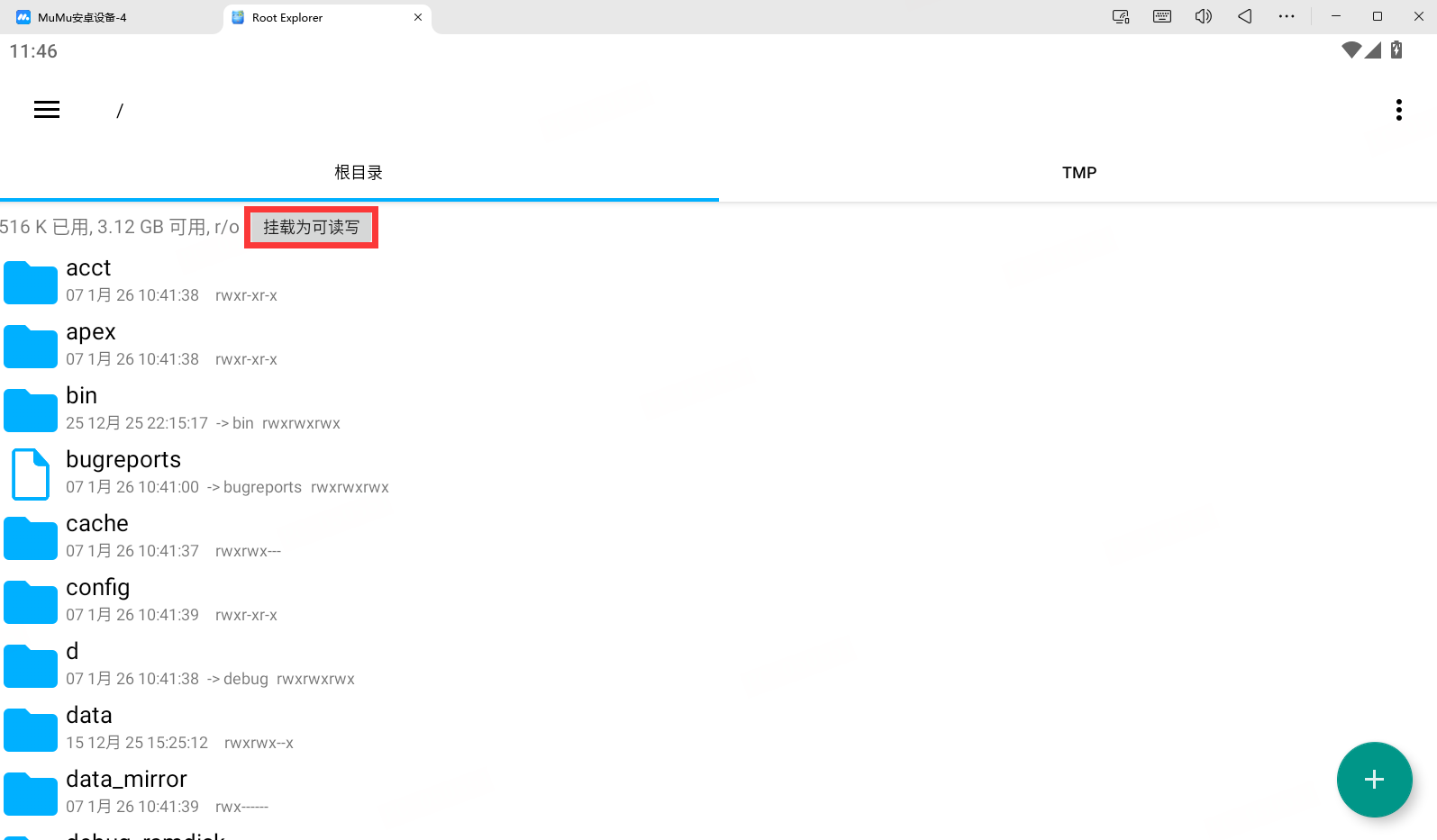 进入 RE文件管理器,授予文件访问权限后,将根目录 r/o 调整为 r/w 的可读写状态。