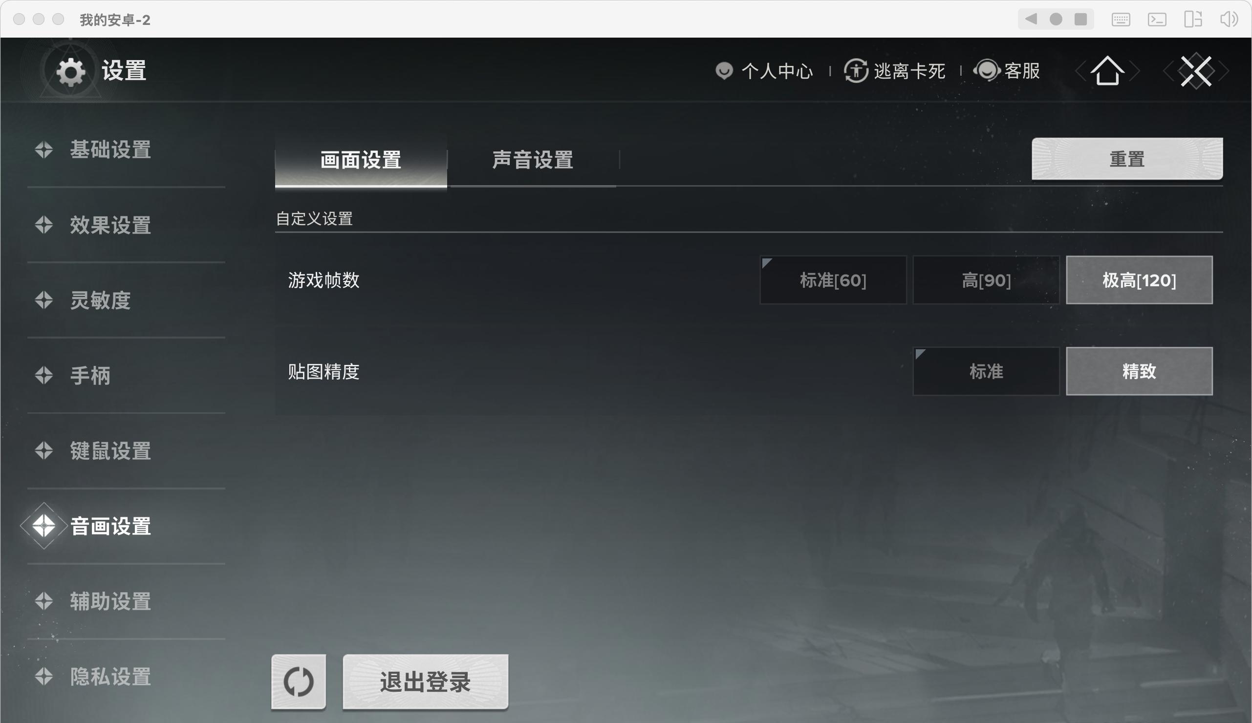 打开游戏设置-画面设置,将帧率调整为 120 帧,贴图精度调整为极致,即可享受超高清画质体验。