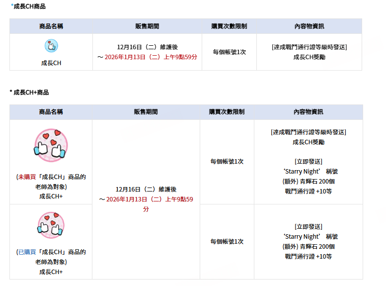 - 活動期間:12月16日(二)維護後~2026年1月13日(二)上午9點59分
