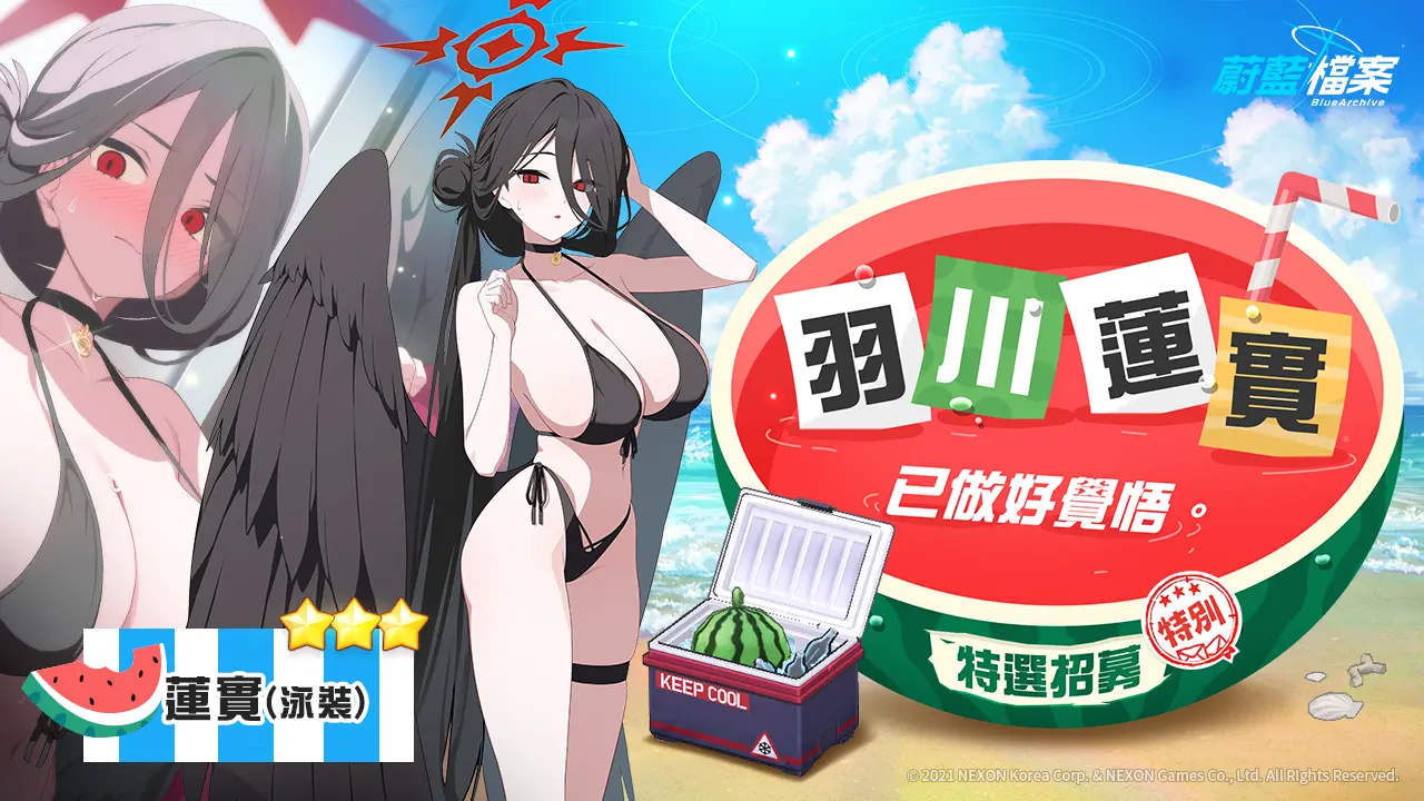 - 蓮實(★3,泳裝)特別特選招募日程:12月16日(二)維護後~12月23日(二)上午9點59分